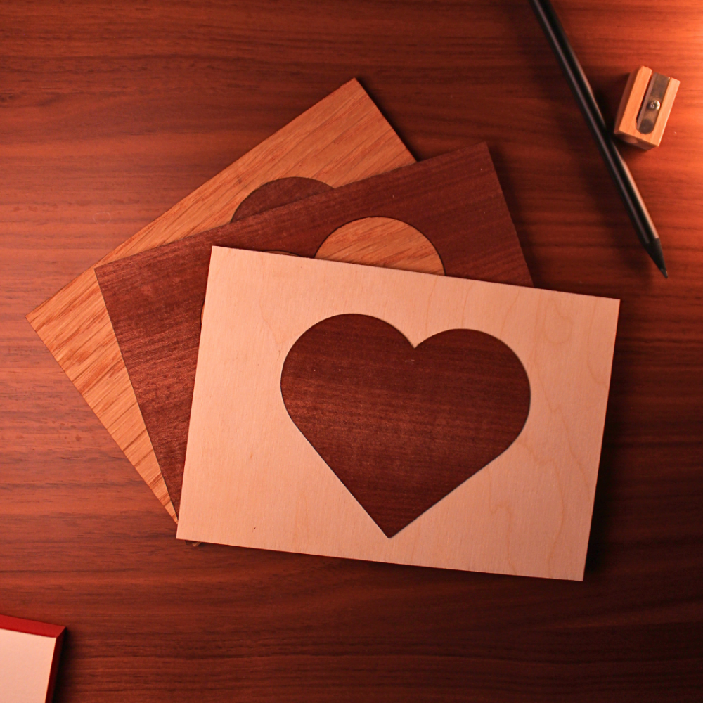 Grußkarte 3er-Set "Herz" - Recycelte Grußkarten aus Holzabfällen der Möbelproduktion