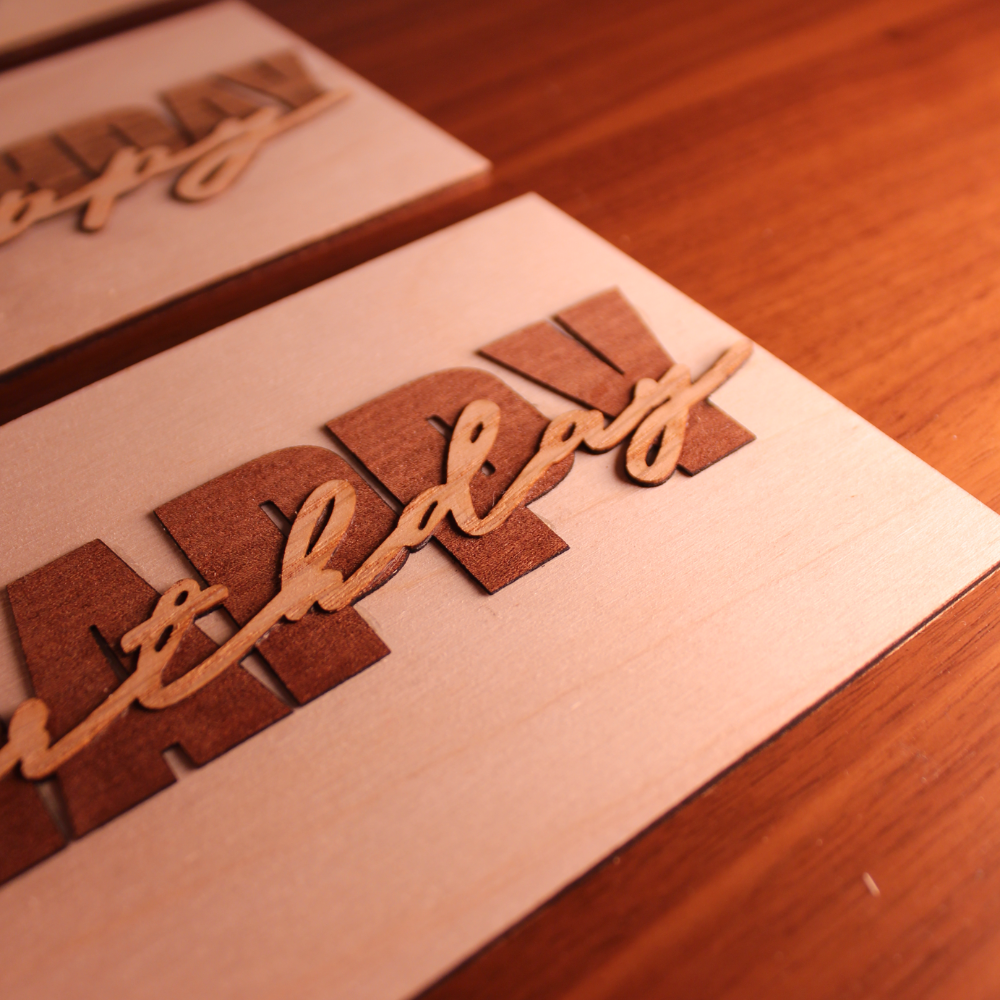 Grußkarte 3er-Set "Happy Birthday" - Recycelte Grußkarten aus Holzabfällen der Möbelproduktion